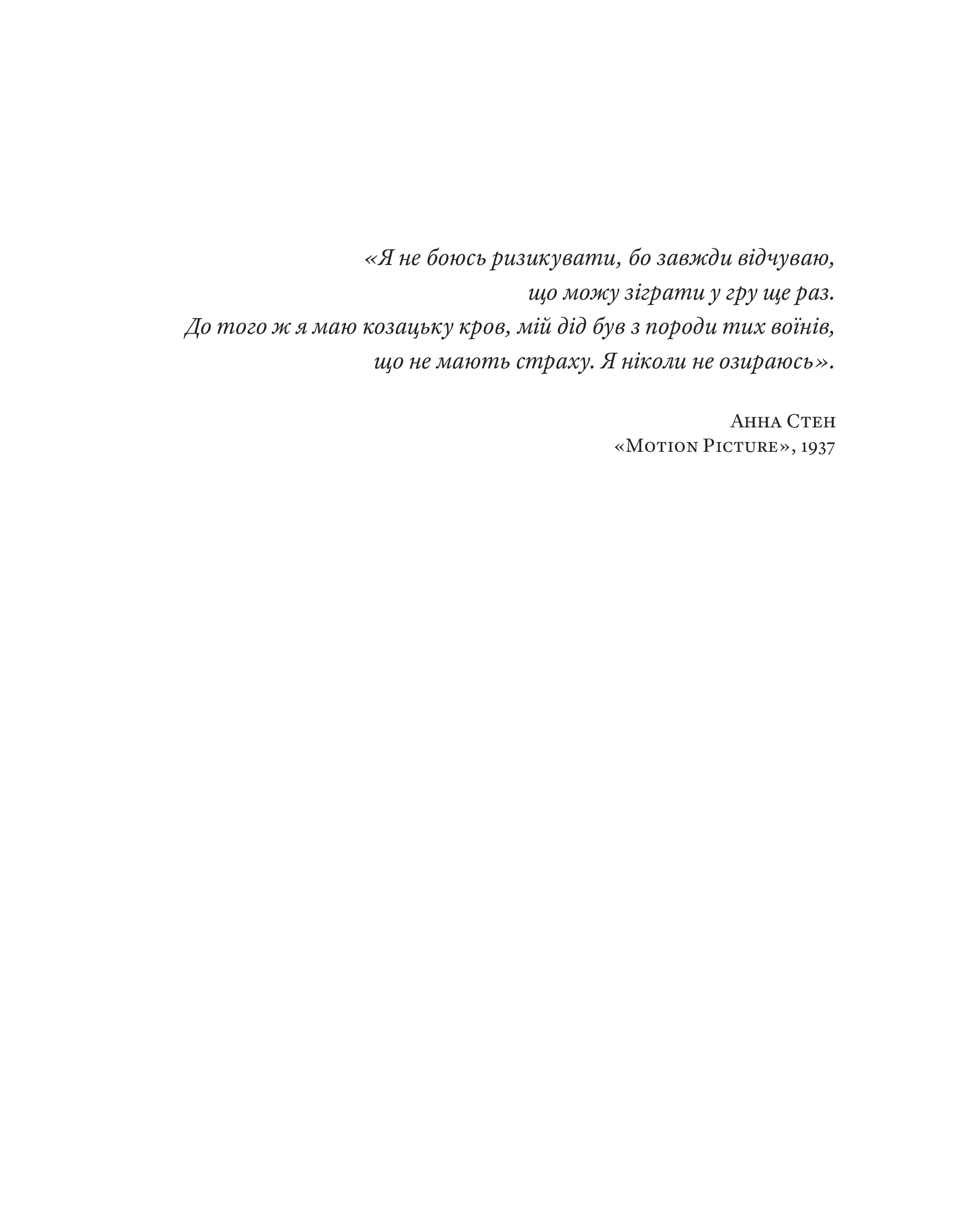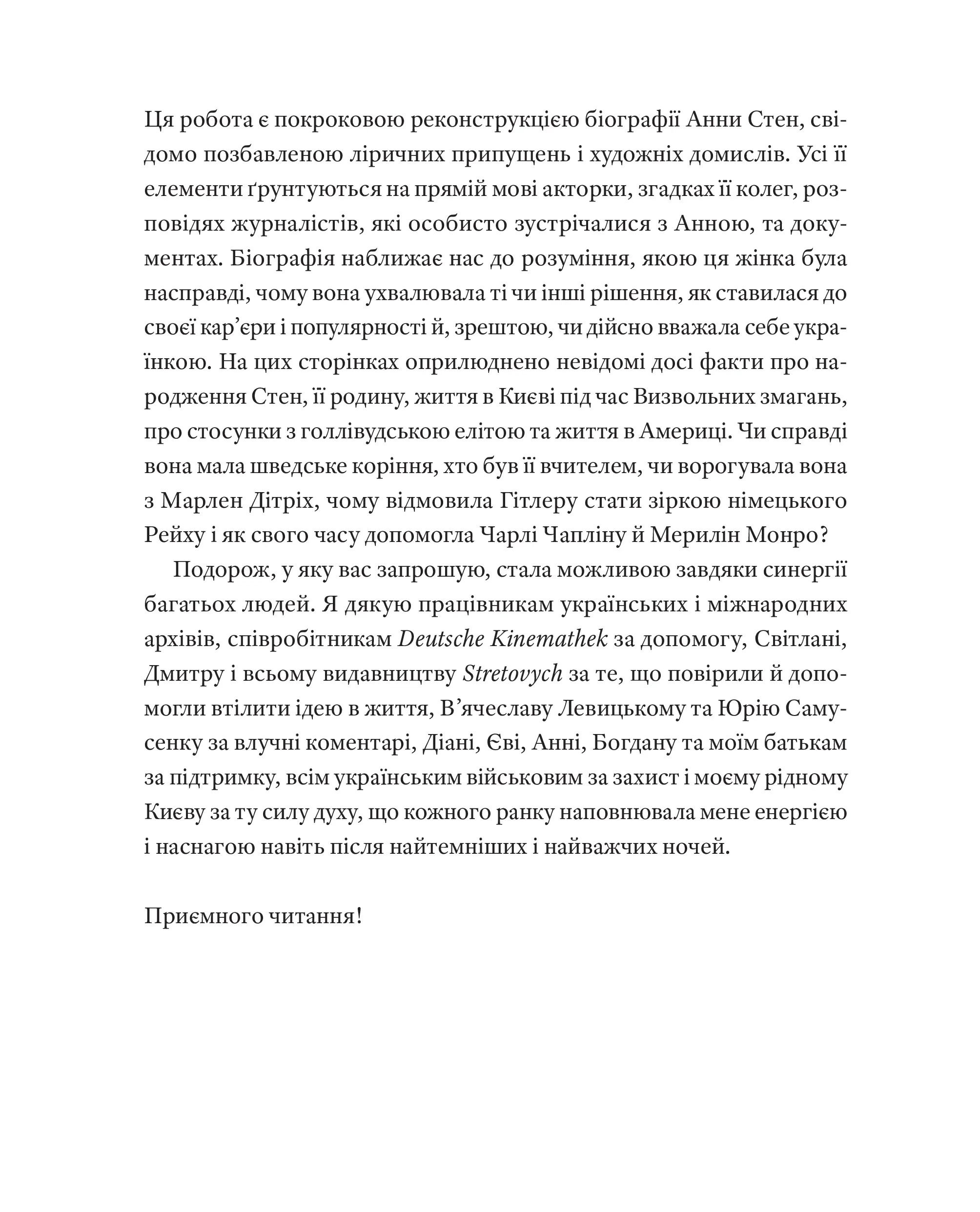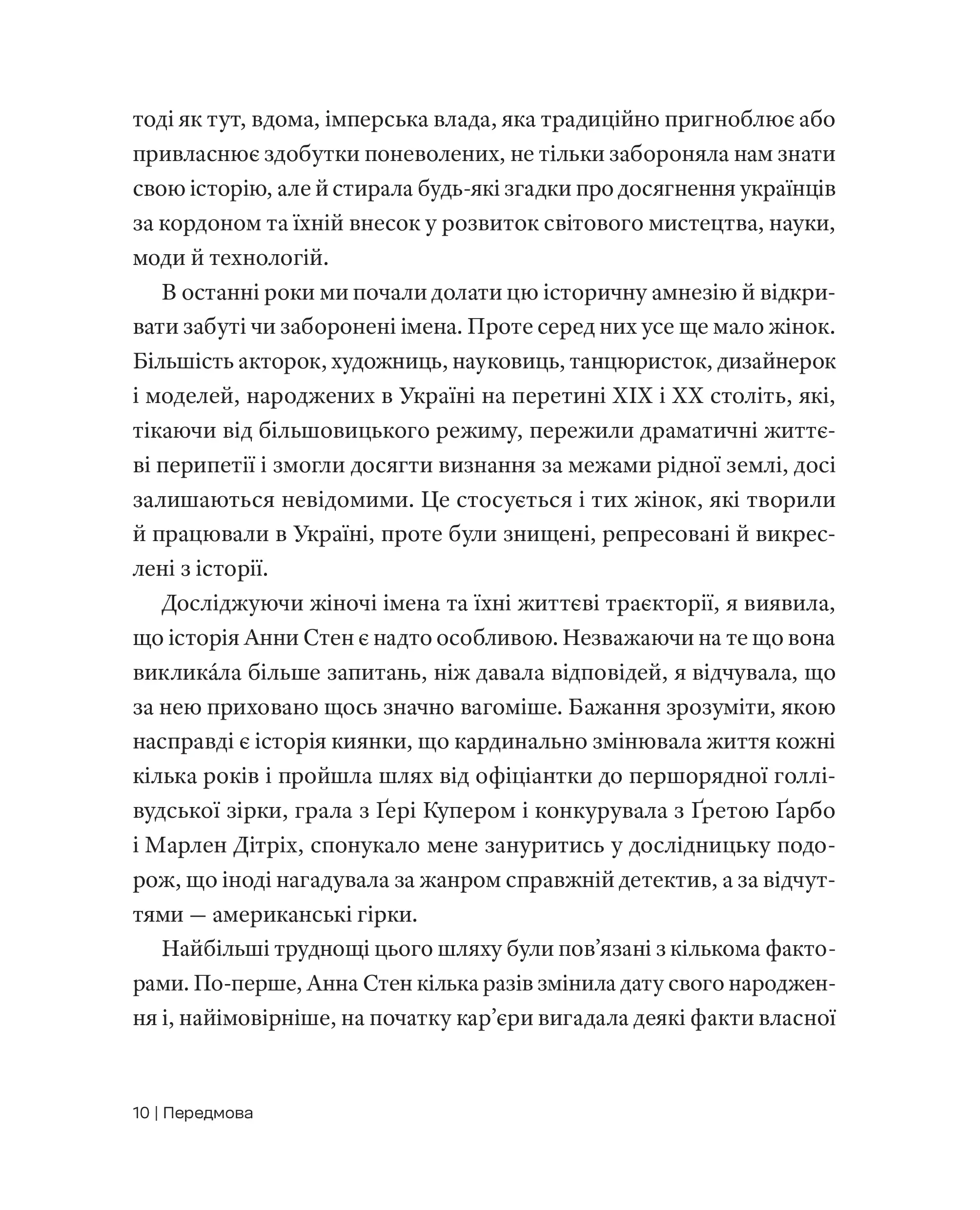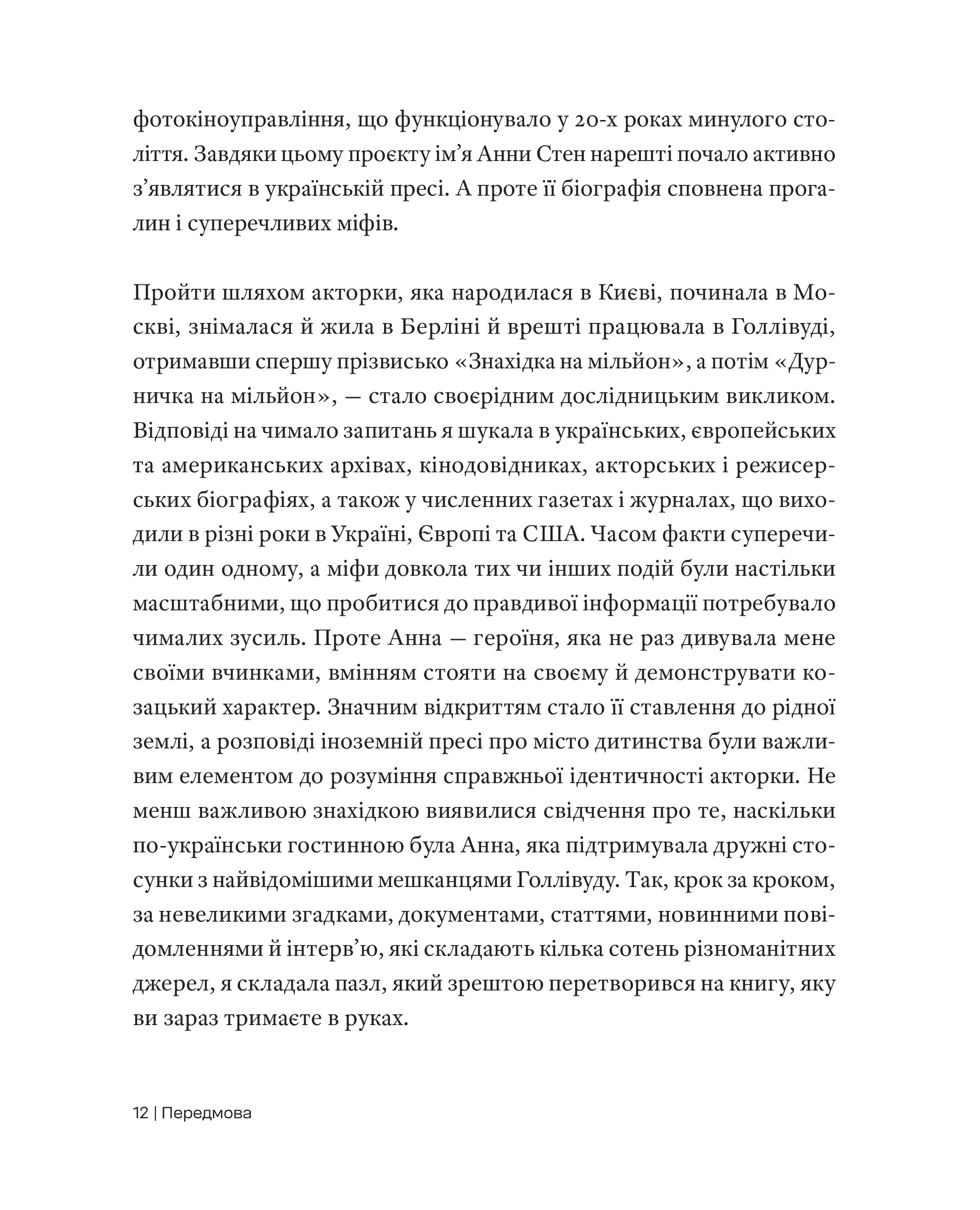 Ця книга про Анну Стен — уважне й елегантне дослідження долі акторки, яка пройшла шлях від Києва до Голлівуду. Авторці вдалося поєднати архівну точність із живою оповіддю, відновлюючи контекст епохи й повертаючи цю майже забуту історію в українську культурну пам’ять. Наталія Васюра ще й пише так легко, ніби дивишся кіно в суботу ввечері на дивані без зайвих турбот робочих днів.
